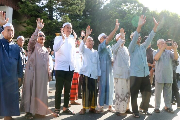 Sebanyak 320 Jemaah Calon Haji (JCH) Kelompok Terbang (Kloter) BDJ 01 asal Kabupaten Banjar, dilepas Bupati Banjar Saidi Mansyur, di halaman Mahligai Sultan Adam Martapura, Sabtu (11/5/2024) pagi.