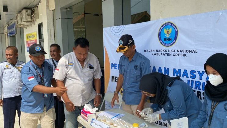 BNN Kabupaten Gresik bersama Unit Pelaksana Teknis (UPT) Pengelola Prasarana Perhubungan (P3) Lalu Lintas Angkutan Jalan (LLAJ) Dinas Perhubungan Provinsi Jawa Timur, menggelar tes urine sopir dan kondektur angkutan Lebaran 2024, yang melintas di Terminal Bunder Gresik.