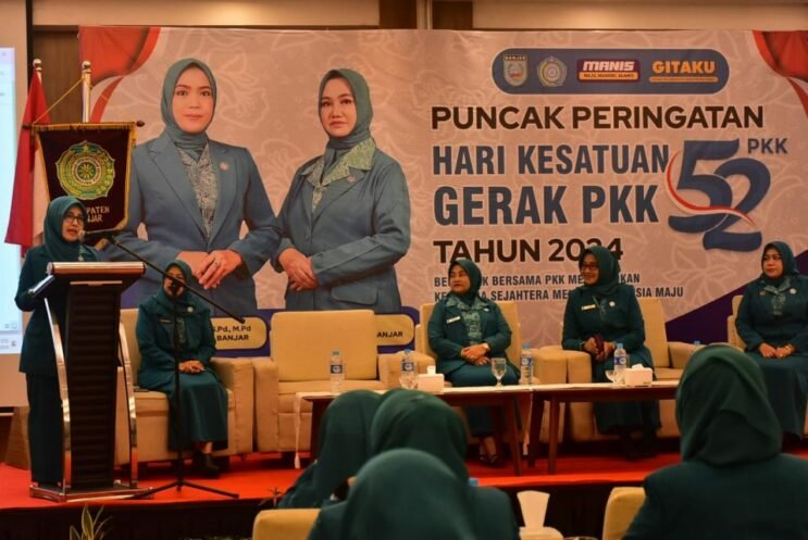 Tim Penggerak PKK Kabupaten Banjar melalui Pokja 4 Bidang Kesehatan Keluarga dan Lingkungan, memperingati Jambore ke-52 Hari Kesatuan Gerak (HKG) PKK, di Hotel Tree Park, Kecamatan Kertak Hanyar, Senin (15/7/2024).