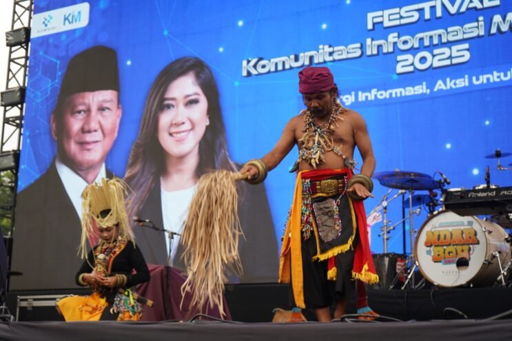 Penampilan tarian kreasi adat Dayak dari Sanggar Seni Budaya Wadian Tambai, Desa Kapul, Balangan, Provinsi Kalimantan Selatan di KIMFest 2025. Foto: Mc.Balangan