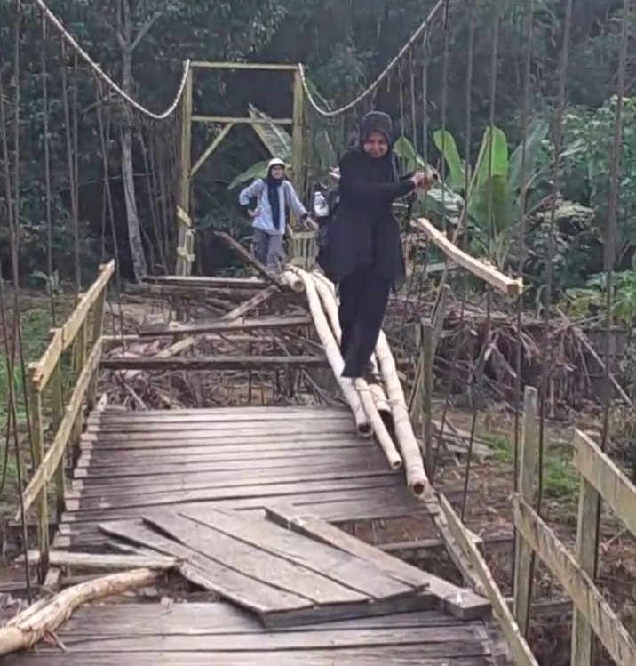 Warga Desa Ajung, Inai mengungkapkan bahwa kondisi jembatan saat ini sudah tidak memungkinkan untuk dilalui, sehingga kawasan wisata otomatis tidak bisa diakses.