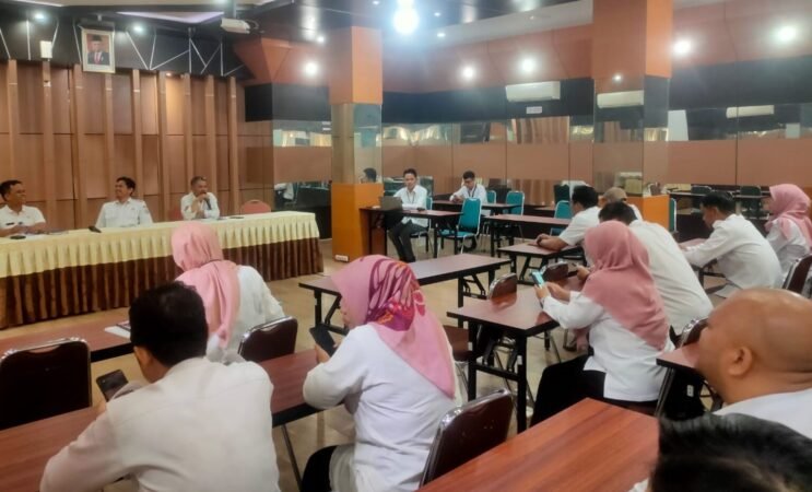 Sekretaris Bappedalitbang, Hanafi pimpin rapat pembekalan penyelenggaraan Banjar Expo 2024, didampingi Kepala Bidang Perencanaan, Pengendalian, dan Evaluasi sekaligus Ketua Koordinator Bappedalitbang untuk Banjar Expo, Mujahid, di aula Baiman Bappedalitbang Banjar, Rabu (18/9/2024).