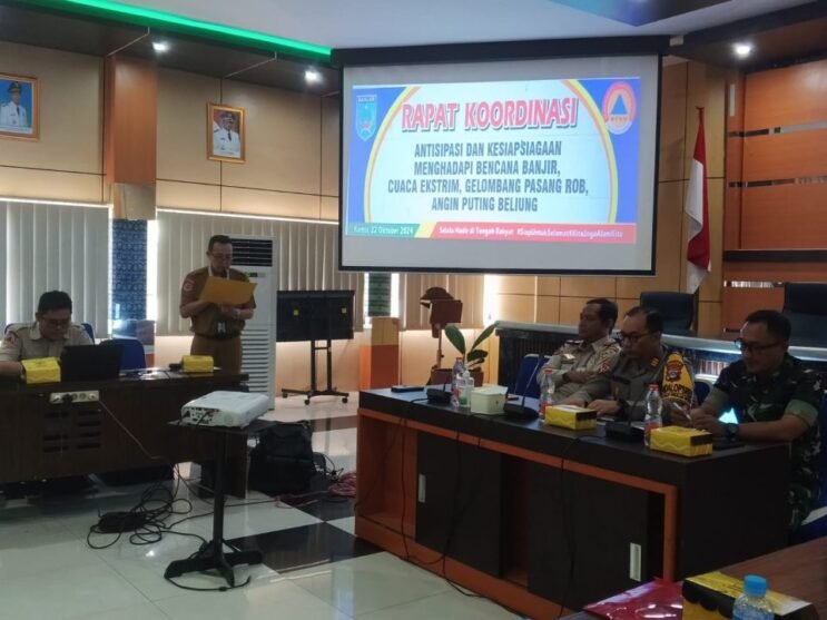 Badan Penanggulangan Bencana Daerah (BPBD) Kabupaten Banjar menggelar Rapat Koordinasi (rakoor) bersama stakeholder, tentang antisipasi potensi cuaca ekstrem pada musim hujan, di Aula Barakat Martapura, Selasa (22/10/2024).