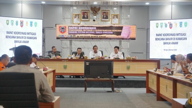 Kabupaten Balangan dipercaya menjadi tempat pelaksanaan rapat koordinasi mitigasi bencana banjir se-Banua Anam, yang digelar di Aula Benteng Tundakan, Kantor Bupati Balangan, Paringin Selatan, Rabu (24/1/2024).