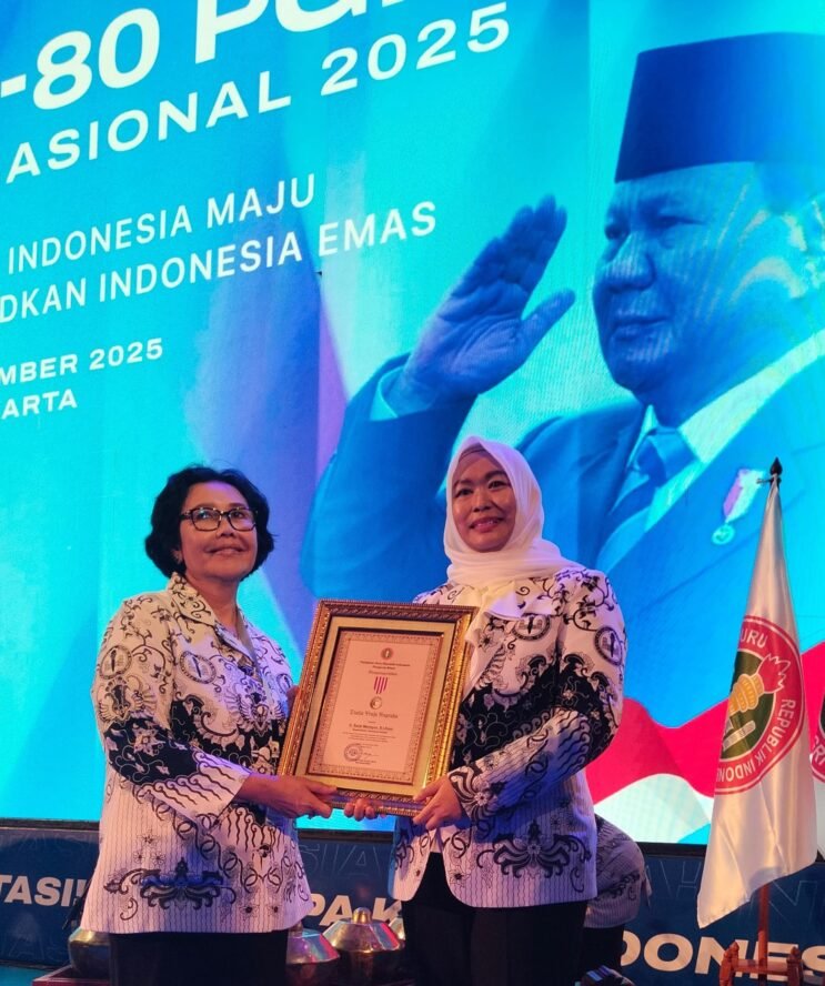Penghargaan tersebut diberikan langsung oleh Ketua Umum PGRI, Prof. Dr. Unifah Rosyidi, dan diterima oleh Kepala Dinas Pendidikan Kabupaten Banjar Liana Penny, yang mewakili Bupati Banjar.