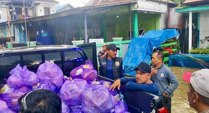 Selain dukungan dari pemerintah daerah, bantuan juga datang dari berbagai pihak. Di lokasi berbeda, pengusaha ternama Banua, H Mansyur, turut membagikan bantuan kepada warga terdampak banjir.