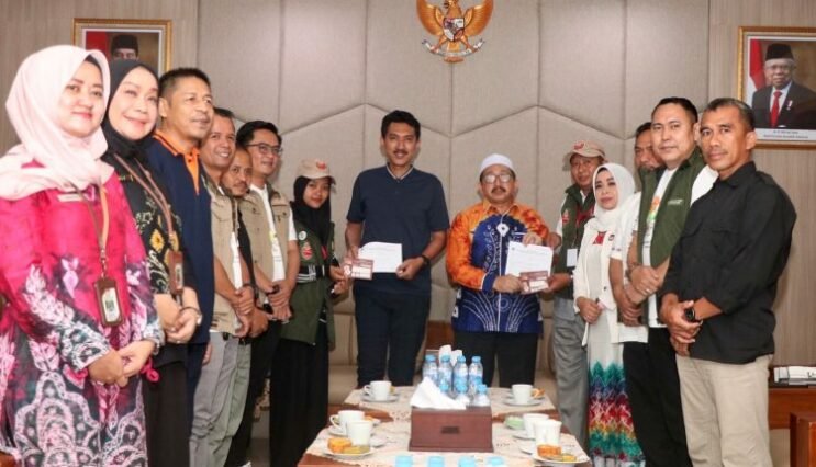 Bupati Banjar Saidi Mansyur dan wakilnya Habib Idrus Al Habsyi menerima Petugas Pemutakhiran Data Pemilih (Pantarlih) untuk Pilkada tahun 2024 di Mahligai Sultan Adam lantai I Martapura, Jumat (28/6/2024) pagi.