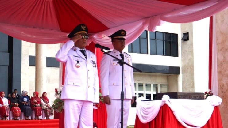 Banua Tv, Kotabaru – Pemerintah Kabupaten (Pemkab) Kotabaru menggelar upacara peringatan Hari Ulang Tahun (HUT) ke-80 Proklamasi Kemerdekaan Republik Indonesia di halaman Kantor Bupati Kotabaru, Minggu (17/8/2025). Upacara berlangsung khidmat meski sempat diguyur hujan, dipimpin langsung oleh Bupati Kotabaru, Muhammad Rusli.