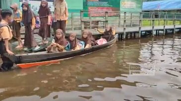 Capai Sekolah Di Tengah Banjir, Murid Dan Pengajar Naik Perahu