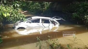 Tabrak Pagar Jembatan, Mini Bus Di Tala Terjun Ke Sungai