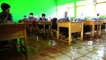 SMP Negeri 2 Martapura Timur Tepaksa Laksanakan Belajar Mengajar Ditengah Banjir