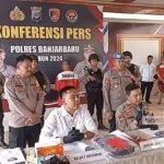 Polres Banjarbaru gelar konfrensi pers terkait kasus pencurian mobil di parkiran ULM Banjarbaru, Senin (21/10/2024) siang.