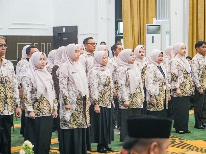 Usai dikukuhkan, Ketua Dekranasda Kota Banjarbaru, Ir. Ririen Kartika Rini, memimpin pelantikan jajaran pengurus baru untuk periode 2025–2030.