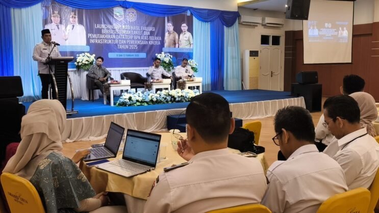 Inspektorat Daerah resmi meluncurkan Aplikasi E-Hebat (Evaluasi Hasil Berbasis Tindak Lanjut), Rabu (11/2/2026), di Ballroom Hotel Grand Surya Kotabaru.