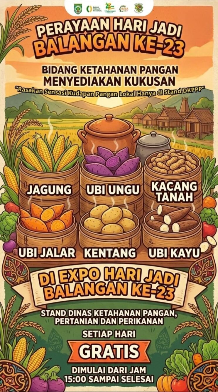 Stand DKP3 dapat dikunjungi setiap hari selama pelaksanaan expo Hari Jadi Balangan ke-23. Pembagian kukusan gratis dimulai pukul 15.00 WITA hingga selesai.