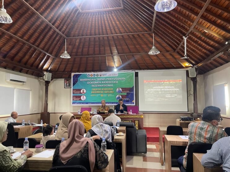 Fakultas Kehutanan (Fahut) Universitas Tadulako (Untad) mengadakan kegiatan Bimbingan Teknis (Bimtek) Penyusunan Dokumen Akreditasi Internasional di Hotel Parama Su, Kota Palu, Sabtu (7/12/2024).