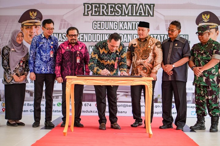 Gedung baru Kantor Dinas Kependudukan dan Pencatatan Sipil (Disdukcapil) Kota Banjarbaru, yang beralamat di Jalan Taman Gembira Selatan, Kelurahan Guntung Paikat, diresmikan Wali Kota Banjarbaru H. M. Aditya Mufti Ariffin, Kamis (13/02/2025).