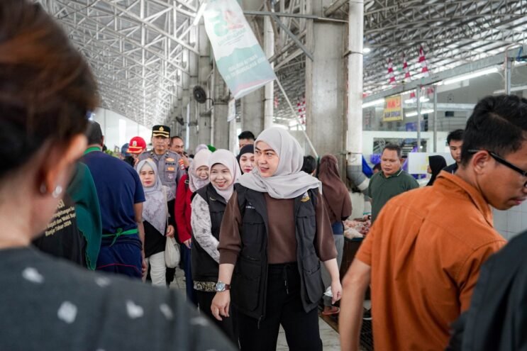 Dalam peninjauan tersebut, Wali Kota Erna Lisa memeriksa satu per satu lapak pedagang untuk memastikan harga bahan pokok tetap stabil.