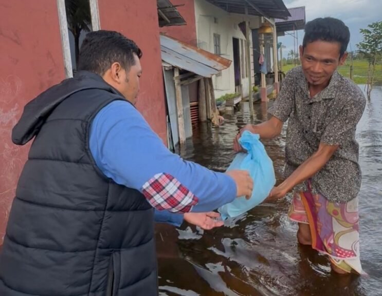 Meski proses penyaluran harus dilakukan hingga malam hari dan petugas menghadapi genangan air setinggi paha orang dewasa, upaya tersebut tetap dijalankan demi memastikan bantuan diterima langsung oleh warga.