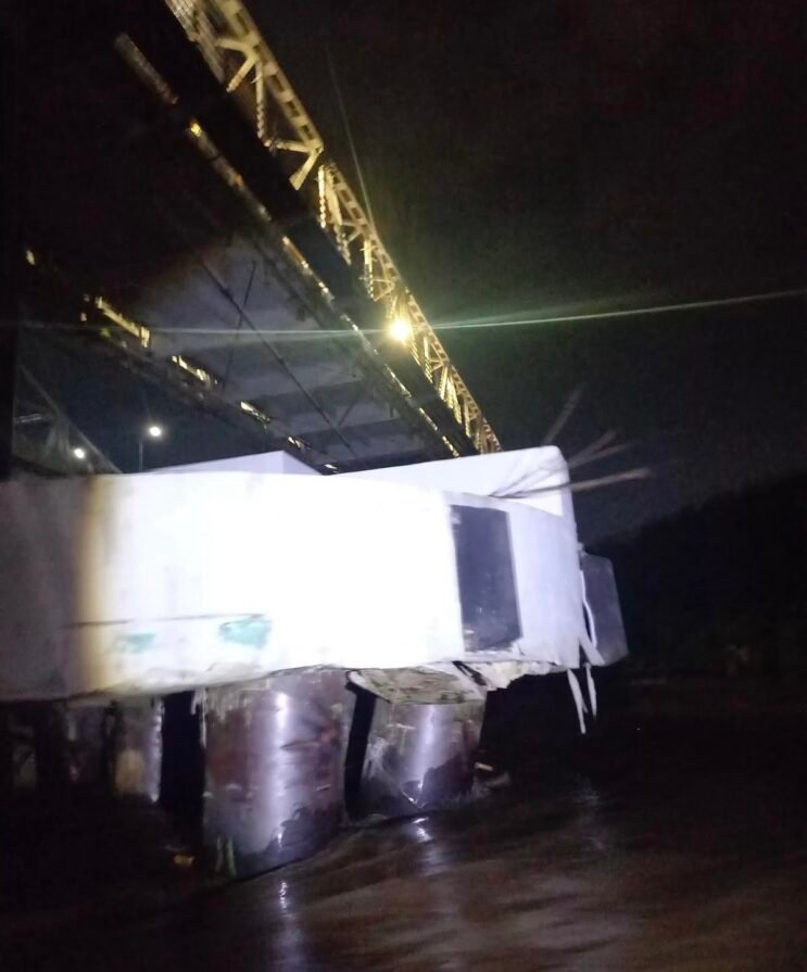 Insiden itu melibatkan sebuah tongkang bermuatan batu bara yang diduga mengalami putusnya tali penarik, sehingga terbawa arus dan menghantam pilar keempat (P4) jembatan.