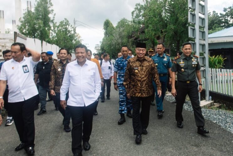 Banjarbaru—Usai peresmian Markas Komando (Mako) BIN Daerah Kalsel, Gubernur Kalsel H. Muhidin didampingi Wakil Gubernur Kalsel, H. Hasnuryadi Sulaiman pengantaran kepulangan Kepala Badan Intelijen Negara (BIN) RI, Letnan Jenderal (Purn) Muhammad Herindra beserta rombongan di VIP Room Bandara Lanud Sjamsudin Noor, Banjarbaru, pada Kamis (10/4/2025) siang.