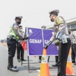 Seorang pengendara motor terjatuh setelah oleng saat melintasi jalan dengan permukaan tidak rata.