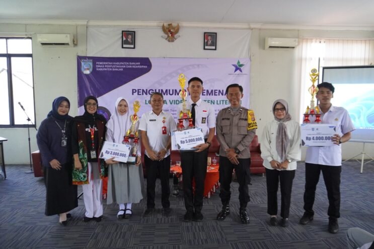 Pemenang 10 besar lomba video konten literasi tingkat Sekolah Menengah Atas (SMA) sederajat se-Kabupaten Banjar, diumumkan Pemerintah Kabupaten Banjar melalui Dinas Perpustakaan dan Kearsipan (Dispersip), di Aula Dispersip, Rabu (23/4/2025) pagi.
