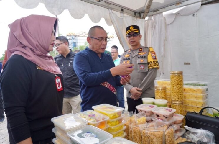 Pjs Bupati Banjar Akhmad Fydayeen saat memantau stand Pasar murah dan Bazar UMKM. Foto: MC Banjar
