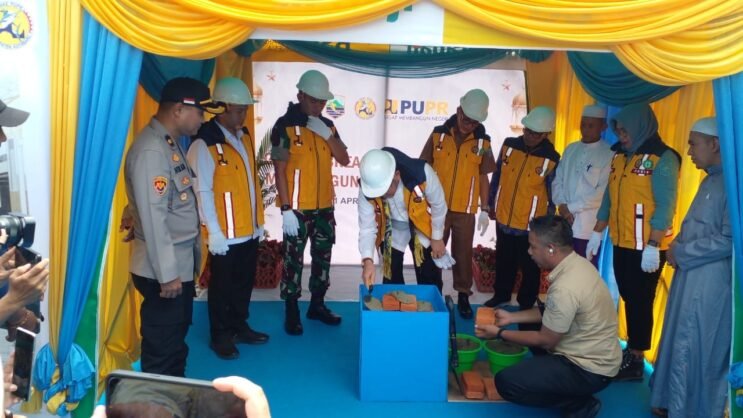 Bupati Kotabaru Sayed Jafar lakukan peletakan Batu Pertama (Ground Breaking), pembangunan Masjid Husnul Khatimah Kotabaru, didampingi Anggota DPRD, Sekretaris Daerah, dan Forkopimda, Senin (1/4/24).
