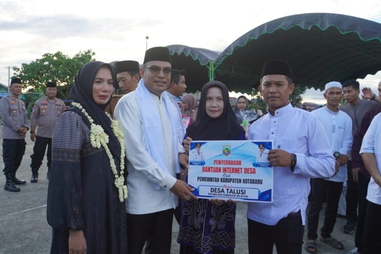 Dilanjutkan penyerahan beberapa bantuan secara simbolis yaitu rehab rumah tidak layak huni sebanyak 5 rumah, pemberian makanan tambahan pencegah stunting oleh dinkes, bansos disabilitas dan anak terlantar dari Dinsos, beasiswa dari Dinas Pendidikan, penyerahan ijin usaha dari Dinas Penanaman Modal Perijinan Terpadu dan penyerahan bantuan internet desa untuk Desa Talusi Kecamatan Pamukan Selatan dari Diskominfo.