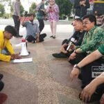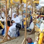 Gubernur Kalimantan Selatan Sahbirin Noor, ikut berayun dalam gelaran Tradisi Budaya Banjar Baayun Maulid, di Taman Cahaya Bumi Selamat Martapura.