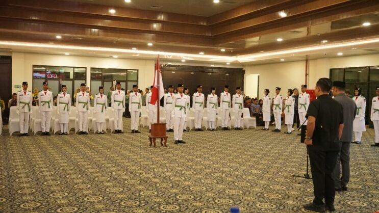 Banua Tv, Kotabaru – Pemerintah Kabupaten Kotabaru resmi mengukuhkan 35 anggota Pasukan Pengibar Bendera Pusaka (Paskibraka) tahun 2025 yang akan bertugas pada upacara peringatan HUT ke-80 Kemerdekaan Republik Indonesia, 17 Agustus mendatang. Pengukuhan berlangsung di Aula Bamega, Kantor Bupati Kotabaru, Sebelimbingan, Jumat (15/8/2025) pagi.
