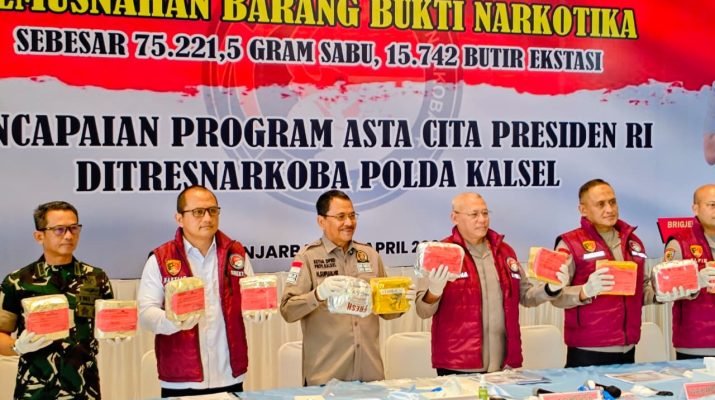 Polda Kalsel Musnahkan 75,2 Kg Sabu dan Ribuan Ekstasi, Dua Kurir Jaringan Internasional Ditangkap