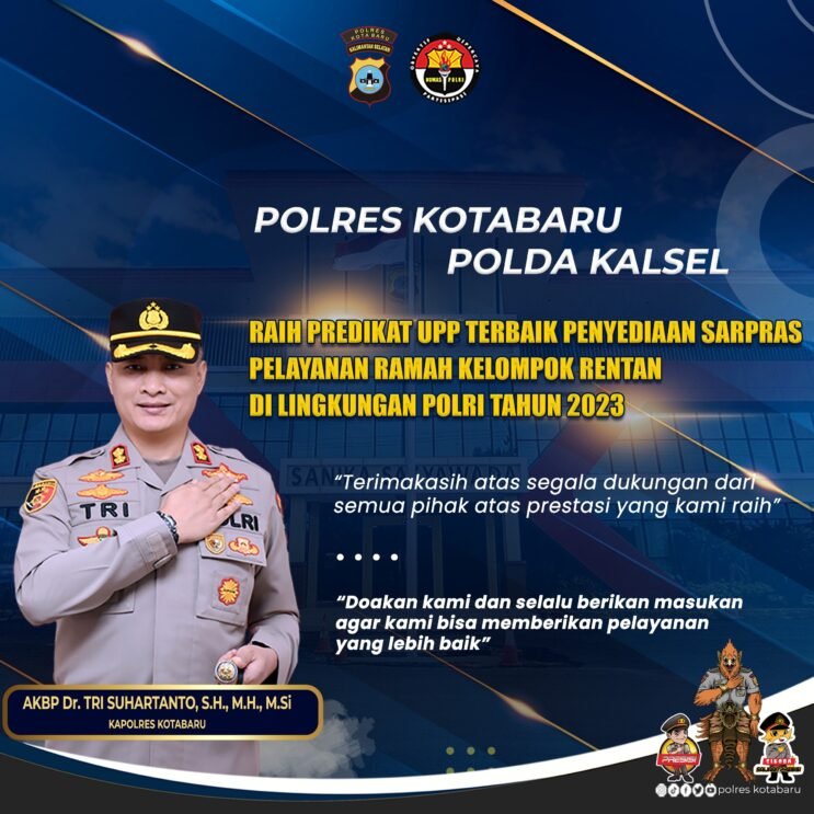 Polres Kotabaru Polda Kalimantan Selatan, dinobatkan sebagai penerima predikat Unit Pelayanan Publik (UPP) Terbaik tahun 2023.