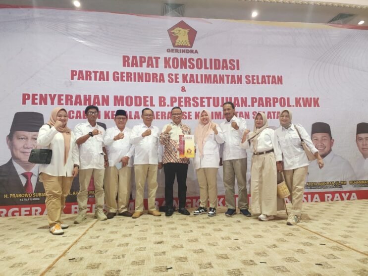 B.1 KWK tersebut diserahkan langsung oleh Ketua Dewan Pimpinan Daerah (DPD) Gerindra Kalsel, Mariana, kepada pasangan H Fani – Habib Taufan, di Hotel Grand Qin Hotel Banjarbaru, Senin (26/8/2024).