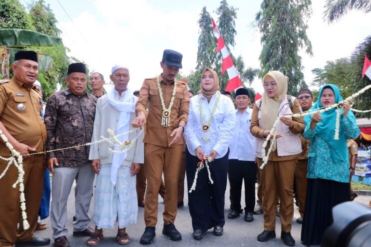 Perayaan syukuran ditandai dengan pemotongan bunga melati oleh Ketua TP PKK Kabupaten Banjar Nurgita Tiyas, yang turut disaksikan Bupati Banjar Saidi Mansyur, Kadis PUPR dan Pertanahan Ana Rosida Santi, serta camat beserta jajaran. Foto: MC Banjar