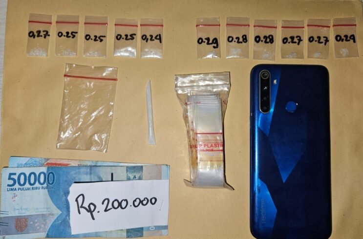 Selain sabu, polisi juga mengamankan sejumlah barang bukti lain berupa klip plastik kosong, sendok penakar, uang tunai sebesar Rp200 ribu yang diduga hasil penjualan, serta satu unit ponsel yang digunakan tersangka untuk aktivitas jual beli narkoba.