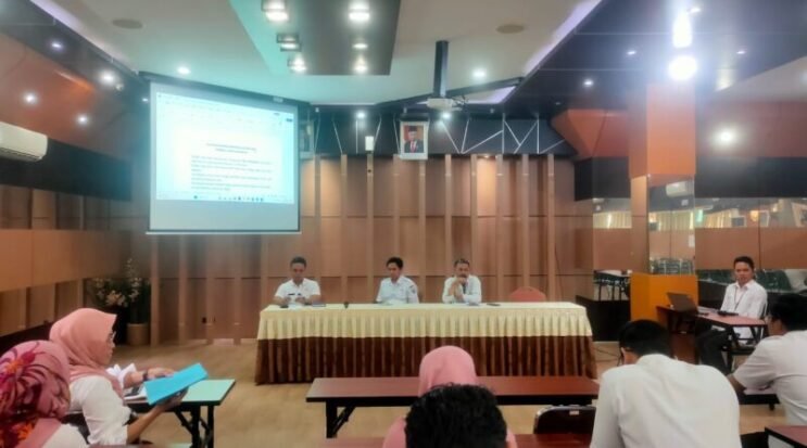 Sekretaris Bappedalitbang, Hanafi, dan didampingi oleh Kepala Bidang Perencanaan, Pengendalian, dan Evaluasi sekaligus Ketua Koordinator Bappedalitbang untuk Banjar Expo, Mujahid, pimpin rapat pembekalan untuk Banjar Expo 2024, di aula Baiman Bappedalitbang Banjar, Rabu (18/9/2024).