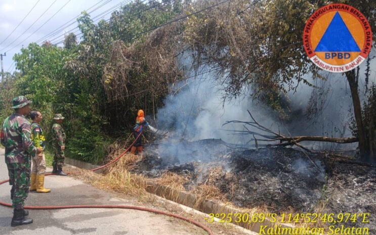 “Tadi ada pengendara motor yang teriak minta tolong, ternyata benar api sudah cukup besar, posisinya persis berseberangan dengan kantor BPBD Kabupaten Banjar,” ujar Norhansyah relawan BPK dari tim gabungan BPBD Banjar.
