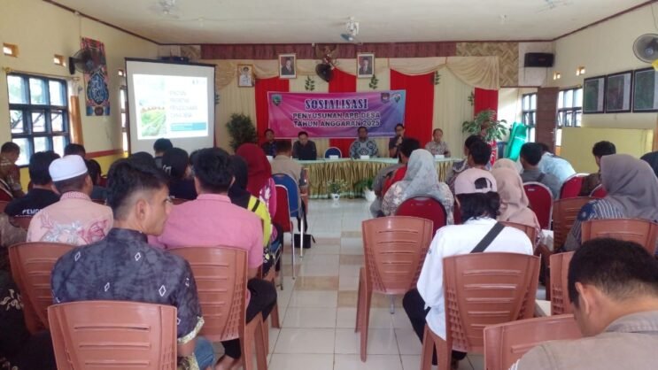 Sosialisasi disampaikan Kabid Bina Pembangunan Desa DPMD, Muhammad Ansar, dan dari penggerak Swadaya masyarakat Ahli Muda Suyoto, dalam acara Sosialisasi Penyusunan APBDes anggaran 2025.