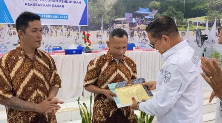 Penyerahan Surat Keterangan Melek Aksara (SUKMA), Program Pendidikan Keaksaraan Dasar, dilaksanakan Lapas Kelas IIA Kotabaru, di Aula Cendrawasih, Rabu (21/2/2024).