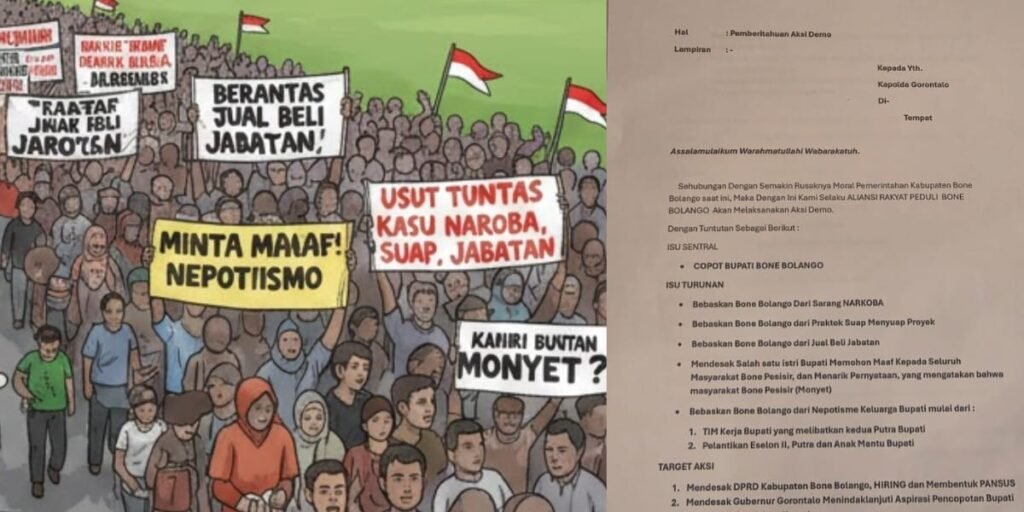 Melalui surat pemberitahuan yang ditujukan kepada Polda Gorontalo, Aliansi Rakyat Peduli Bone Bolango secara resmi mengumumkan rencana aksi demonstrasi sebagai bentuk respons atas kondisi pemerintahan yang dinilai semakin merosot secara moral.