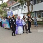 Tiang yang bisa roboh sewaktu waktu ini, oleh warga diikat ke bagian pagar rumah.