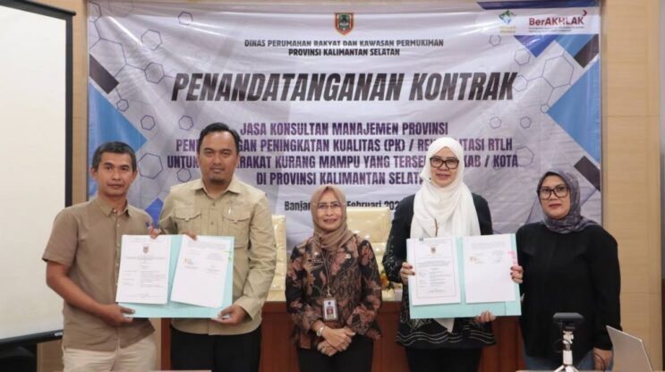 Penandatanganan kontrak dengan beberapa konsultan manajemen provinsi, dilakukan Dinas Perumahan Rakyat dan Kawasan Permukiman Provinsi Kalimantan Selatan (Perkim Prov. Kalsel), di Aula Kantor, Banjarbaru, Jumat (14/2/2025).