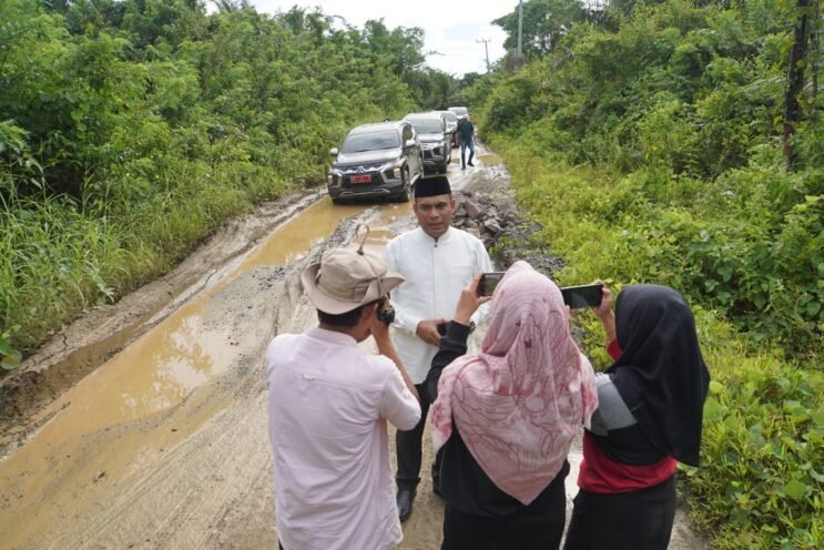 Wakil bupati kotabaru Syairi Mukhlis bersama rombongan meninjau secara langsung kondisi jalan rusak di area Kecamatan Sampanahan, Selasa (11/03/2025).