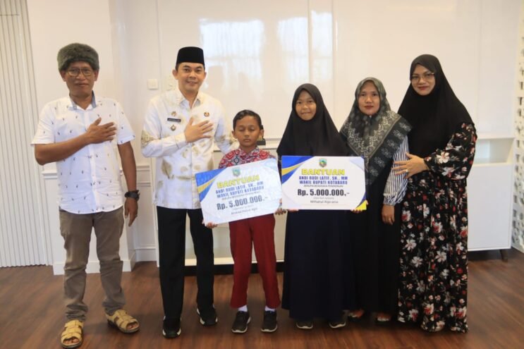 Wakil Bupati Kotabaru H. Andi Rudi Latif. S.H., MM., memenuhi janji kepada dua Kakak berdik, warga desa langadai Kelumpang Hilir Kotabaru, Miftahul Alpirania 14 tahun dan Ahmad Paisal Ajni 12 tahun, dengan memberikan bantuan beasiswa pendidikan.