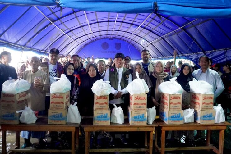 Bantuan terhadap korban Banjir di Teluk Selong Ulu, Kecamatan Martapura Barat, Kabupaten Banjar, diserahkan secara simbolis oleh Gubernur Kalimantan Selatan H Muhidin didampingi Bupati Banjar diwakili Sekda HM Hilman kepada perwakilan warga, Senin (27/1/2025) siang.